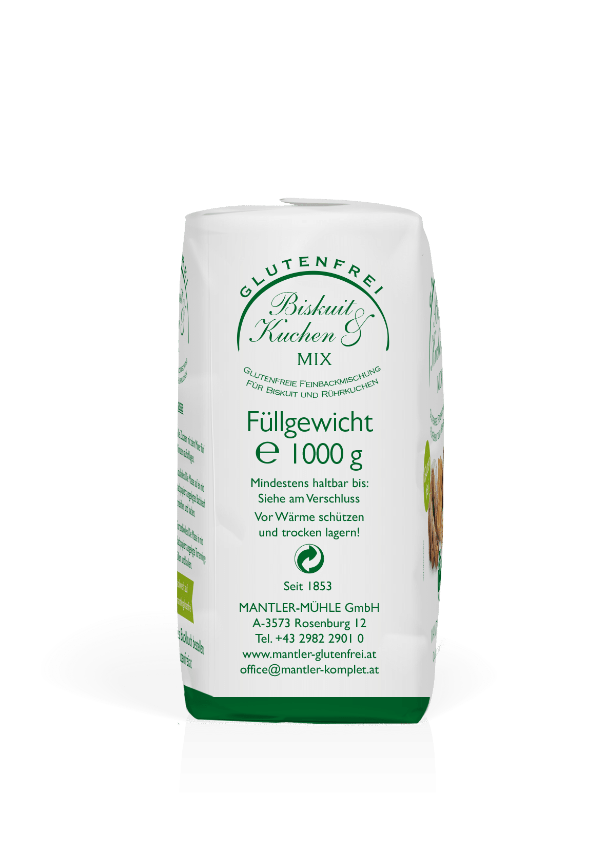 Backmischung speziell zum Backen von flaumigen, glutenfreien Biskuits und Kuchen. Für das Grundrezept benötigen Sie nur noch Eier und Butter!
